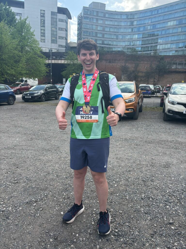 Harry Thynne also completed the Manchester Marathon and raised £595 for Velindre! Harry said:
