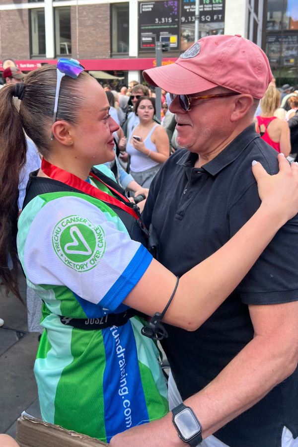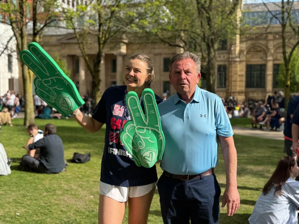 Kirsten Williams-Lee ran the AJ Bell Great Run Manchester Half Marathon this month to raise essential funds for Velindre and to celebrate her beloved dad. Kirsten’s dad was treated at the centre and is now in remission. Although it was the most challenging thing Kirsten has ever done, she was inspired by her dad and the resilience of everyone undergoing treatment, which gave her the hope and drive she needed to achieve her goal.