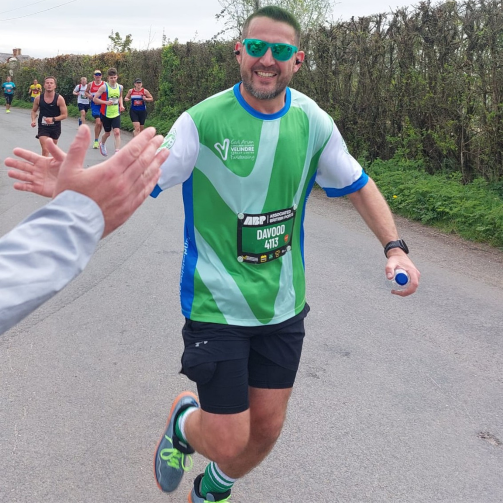 Dav ran the Newport Marathon last month in aid of Velindre and in memory of his beloved mum, Jayne, who was cared for at the centre.